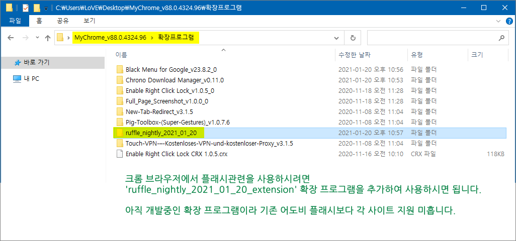 여기에서 사용되는 경로는 공유한 포터블에만 해당되는 것으로, 다른 버전의 크롬 포터블들은 "PepperFlash"폴더를 찾아 설명을 참조하면 됩니다.