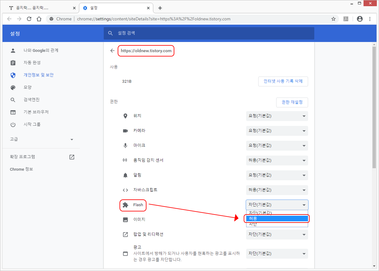 크롬 공식버전은 이런 번잡한 과정을 통해 사이트에 Flash를 허용하여도 브라우저를 종료하고 다시 시작하면 이 과정을 또 작업해서 이런 기능들이 수정된 패치 포터블을 저는 사용합니다.