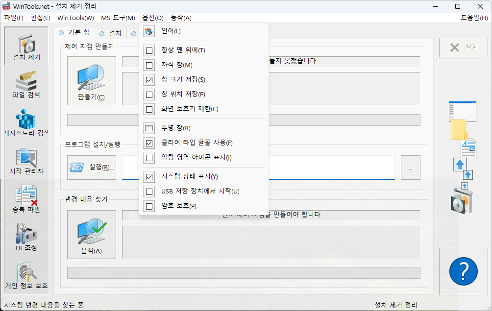 WinTools.net 도구모음 : 프로그램 제거, 파일 검색, 바로가기 검색, 레지스트리 검색, 시작 관리자, UI 트윗, 중복파일, Net Tweaker, 개인정보 보호, 파일 분쇄기...