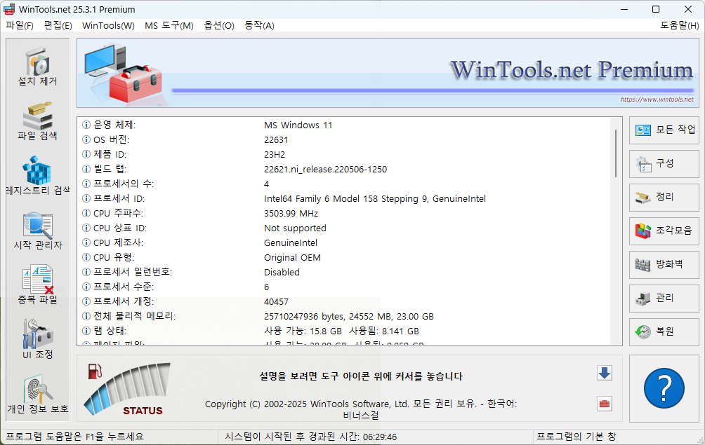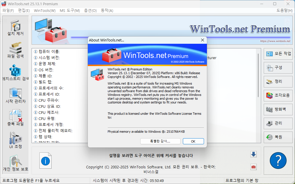 | 홈페이지 http://www.wintools.net/ 업데이트 내역 http://www.wintools.net/differences/index.html 시스템 지원 Windows 2000 / 2003 / 2008 / XP / VISTA / 7 / 8.1 / 10 / 11 |