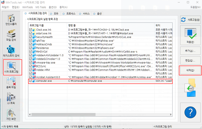 ^^; 언제 이놈이 설치된 것인지 모르겠는데, 컴 시작 시 이상하게 열심히 달려서 확인했더니 몰래 이 놈이 실행되고 있어 삭제를 하고 재시동해도 이런 메시지가 나와 WinTools.net 프로그램으로 해결했습니다.