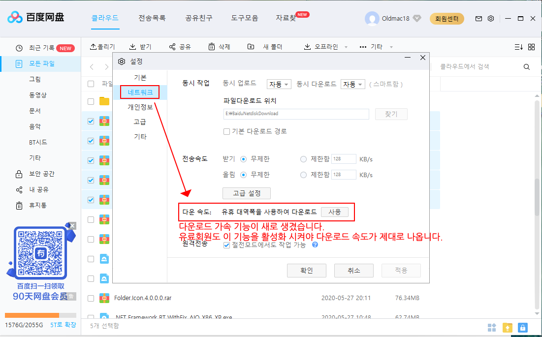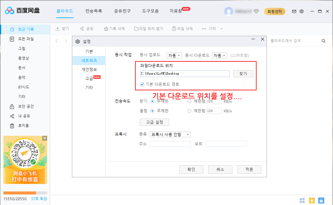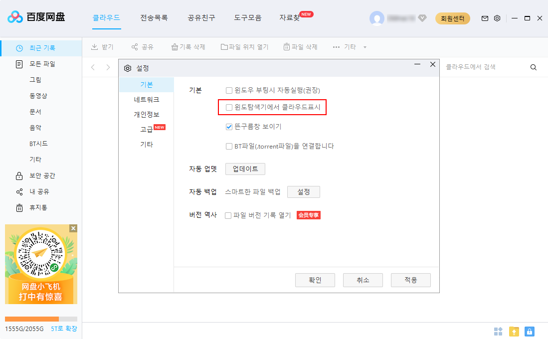 BaiduNetdisk_v7.6.0.13 포터블 및 무설치(한국어 포함)
