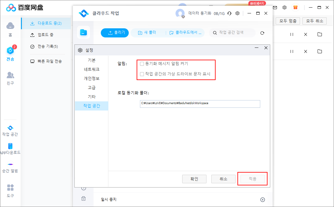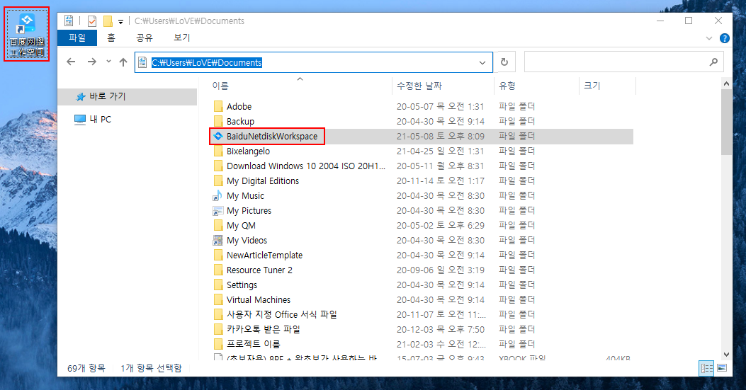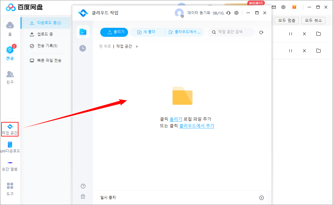 버전 7.3부터 'Baidu 네트워크 디스크 작업 공간' 기능이 새롭게 생겼습니다. 그래서 프로그램 첫 실행 시 바탕화면에 '百度网盘工作空间' 바로가기 아이콘이 생성됩니다. '작업 공간'을 사용하지 하지 않을 실 분들은 삭제하여 사용하셔도 상관없습니다.