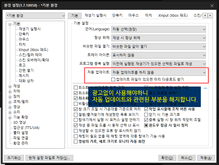 PotPlayer v1.7.18958 설치 버전(광고없는 마지막 버전)
