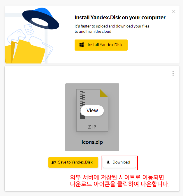 - 홈페이지 다운로드 링크에서 추가 아이콘팩 "Icons.zip"파일을 다운로드한 다음에 압축 해제합니다.