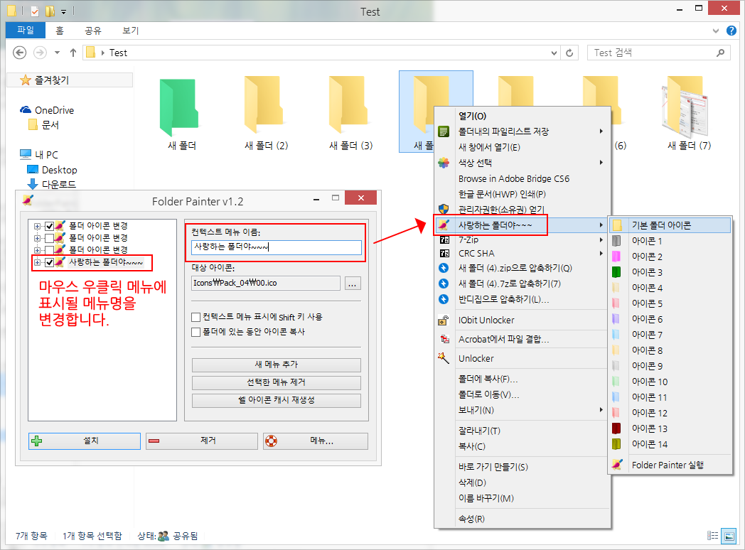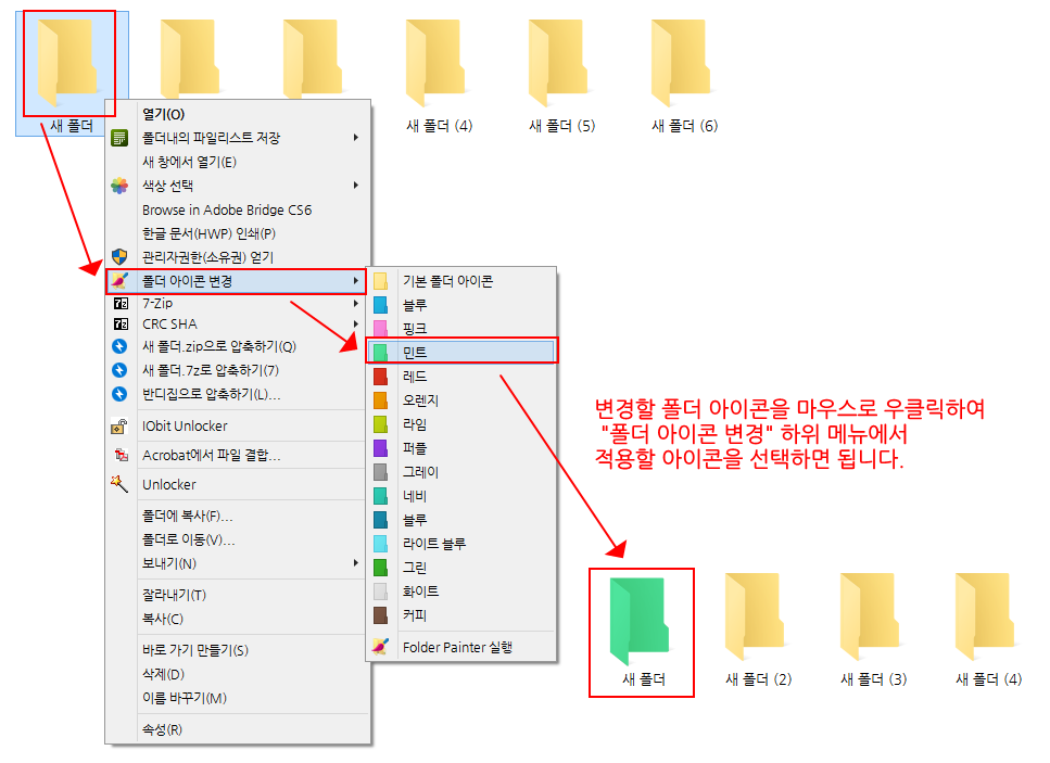 - 설치 : 마우스 우클릭 메뉴에 "폴더 아이콘 변경" 메뉴를 추가