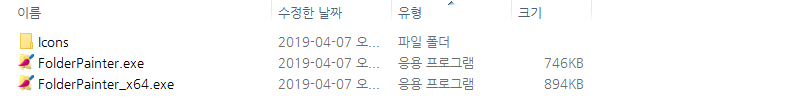 다운로드한 Folder Painter는 설치가 필요없는 휴대용 응용 프로그램이며, "설치된 Widnows 운영체제 맞게 32비트는 "FolderPainter.exe"로 64비트는 "FolderPainter_x64.exe" 실행파일로 프로그램을 시작하면 됩니다.