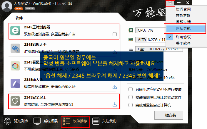 중국어 EasyDrv 프로그램으로 드라이버 설치 시 주의사항입니다.