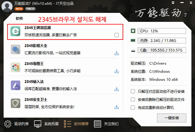 EasyDrv는 현재 공개 버전과 VIP 버전으로 구별되는데, VIP 버전인 경우는 공식적인 KEY 사용자로 등록하면 번들 프로모션 소프트웨어가 설치되지 않습니다. 공개 버전과 VIP 버전은 구성에 차이점이 없지만, 설치 시 "2345 보안 프로그램과 2345 브라우저"가 기본으로 함께 설치되면서 사용자 브라우저 기본 홈페이지도 2345 사이트로 수정합니다.