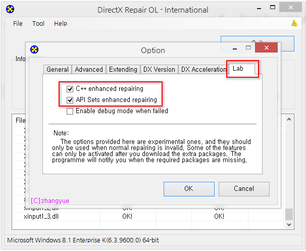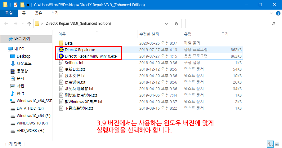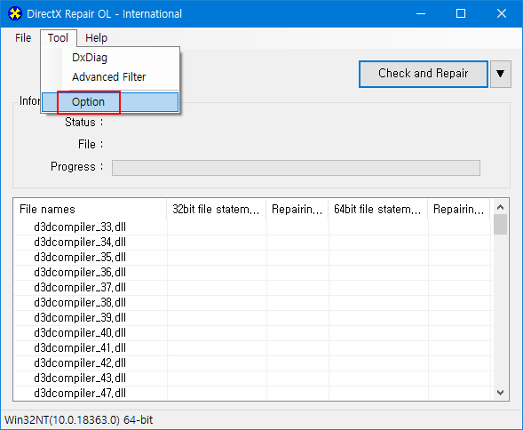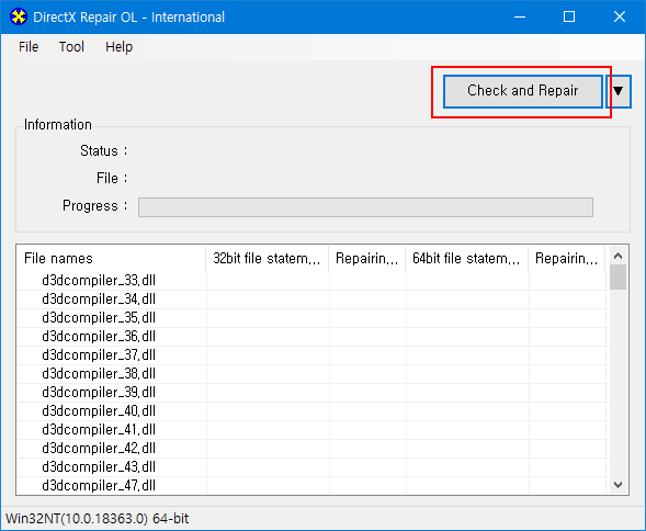참고사항 : DirectX Repair V3.9 버전 사용 시