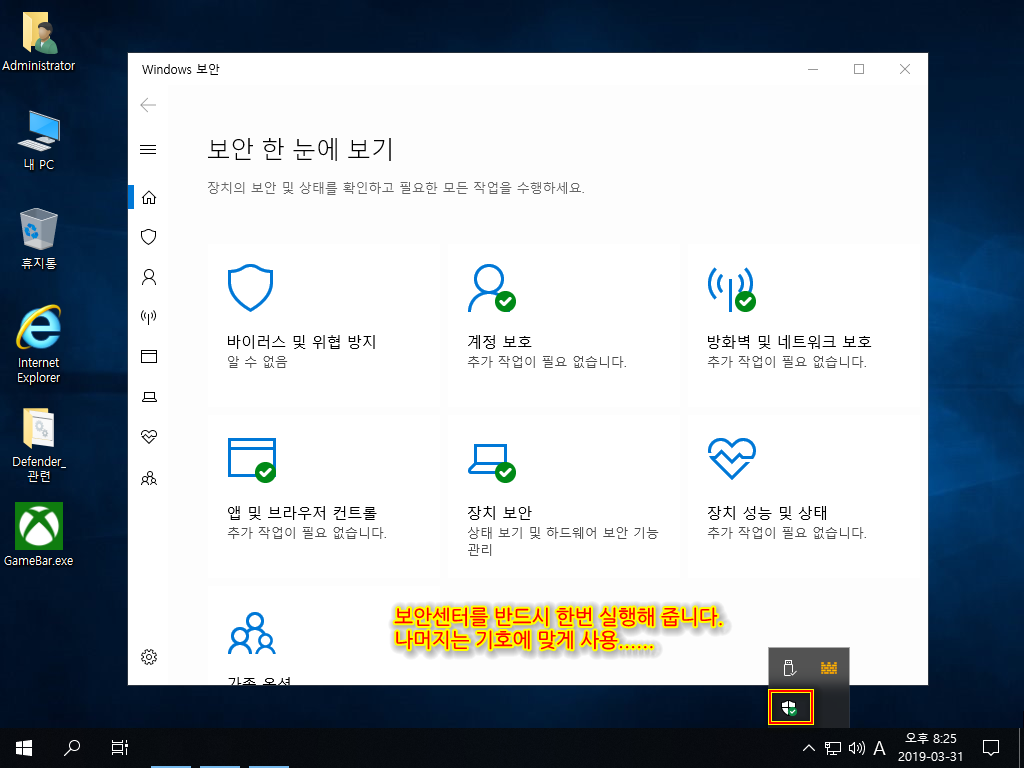- 디펜더를 사용하기 위해서는 "보안센터" 재설치가 필요