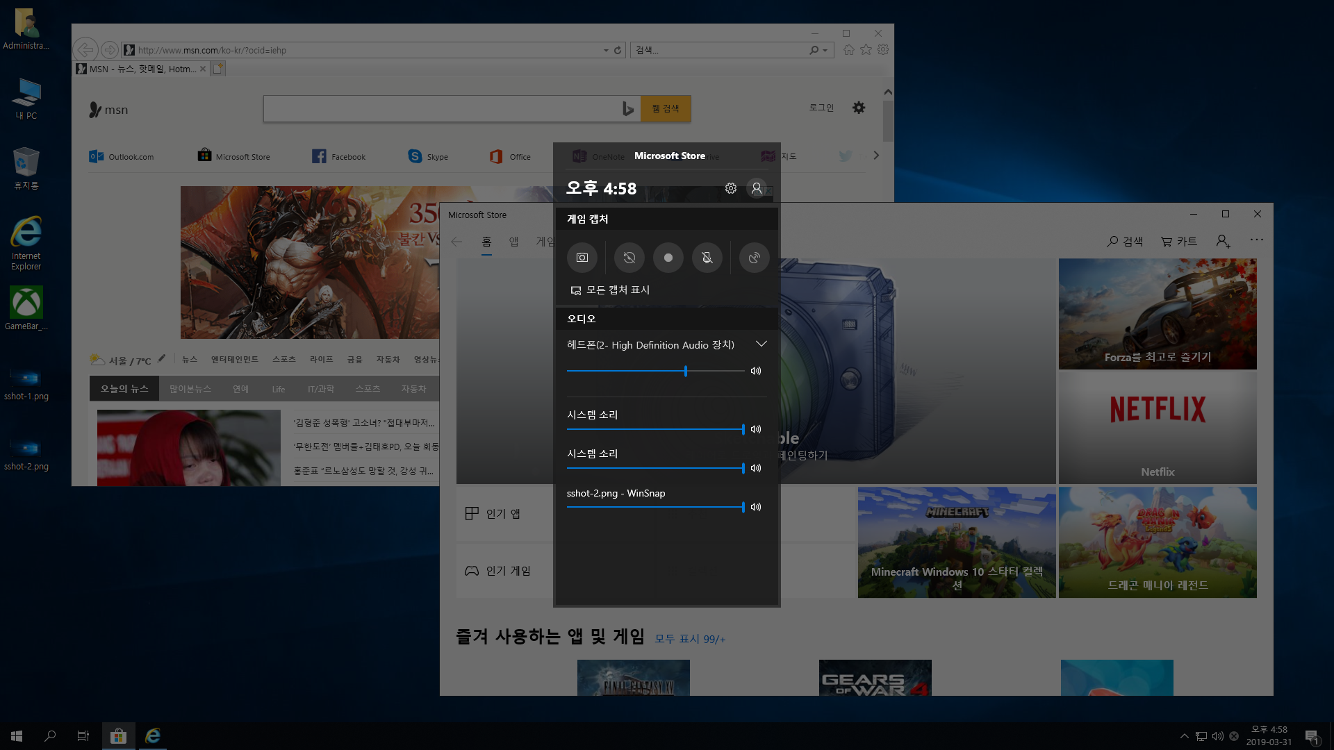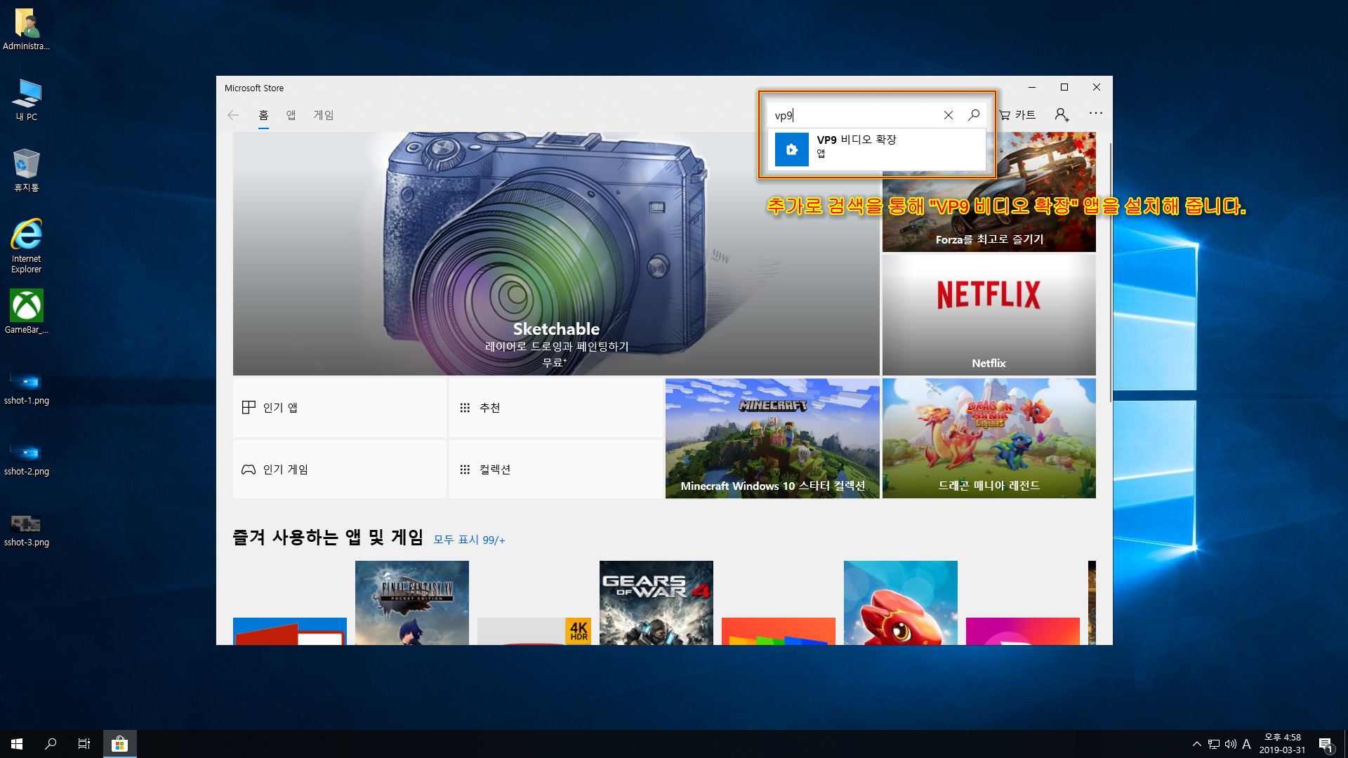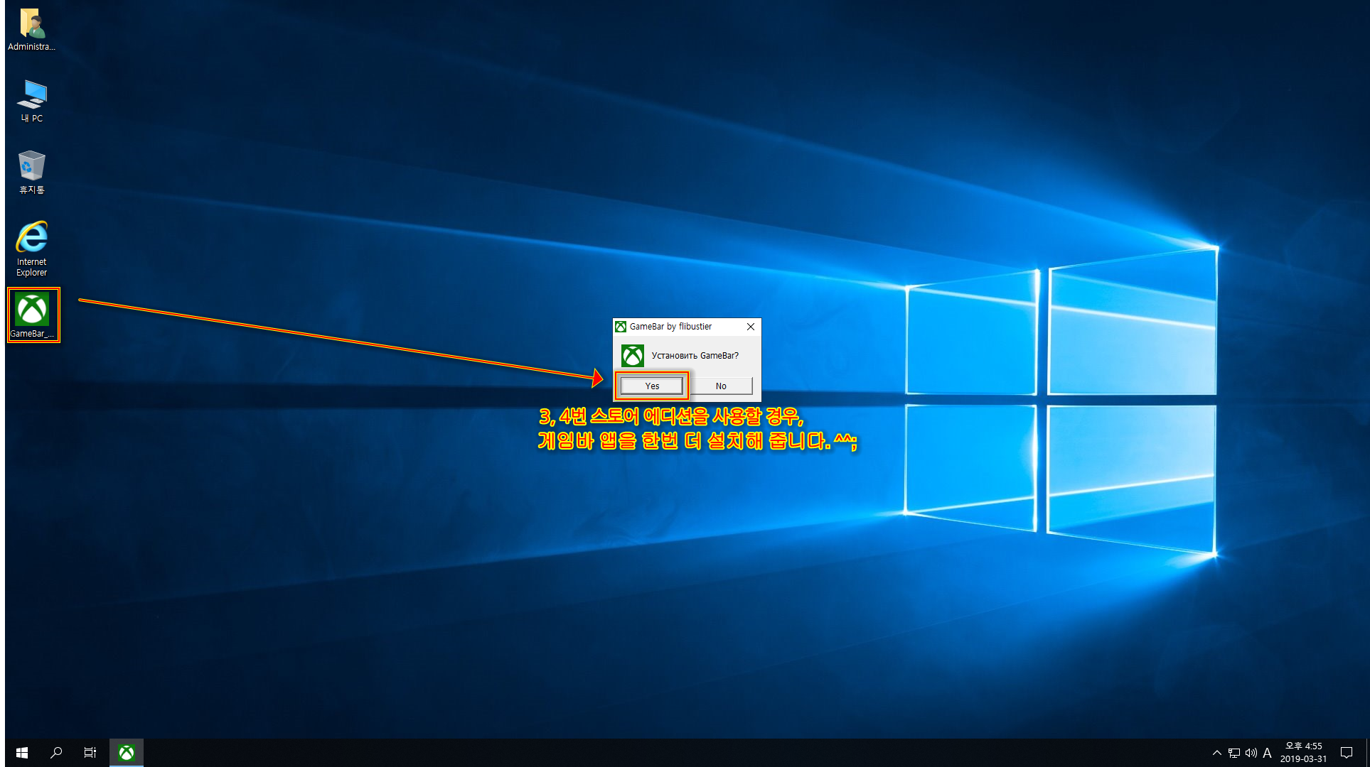- 스토어앱과 게임 바 추가(게임 바 부분은 한번 더 재설치가 필요)