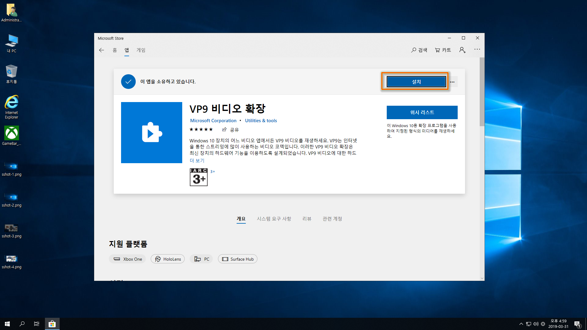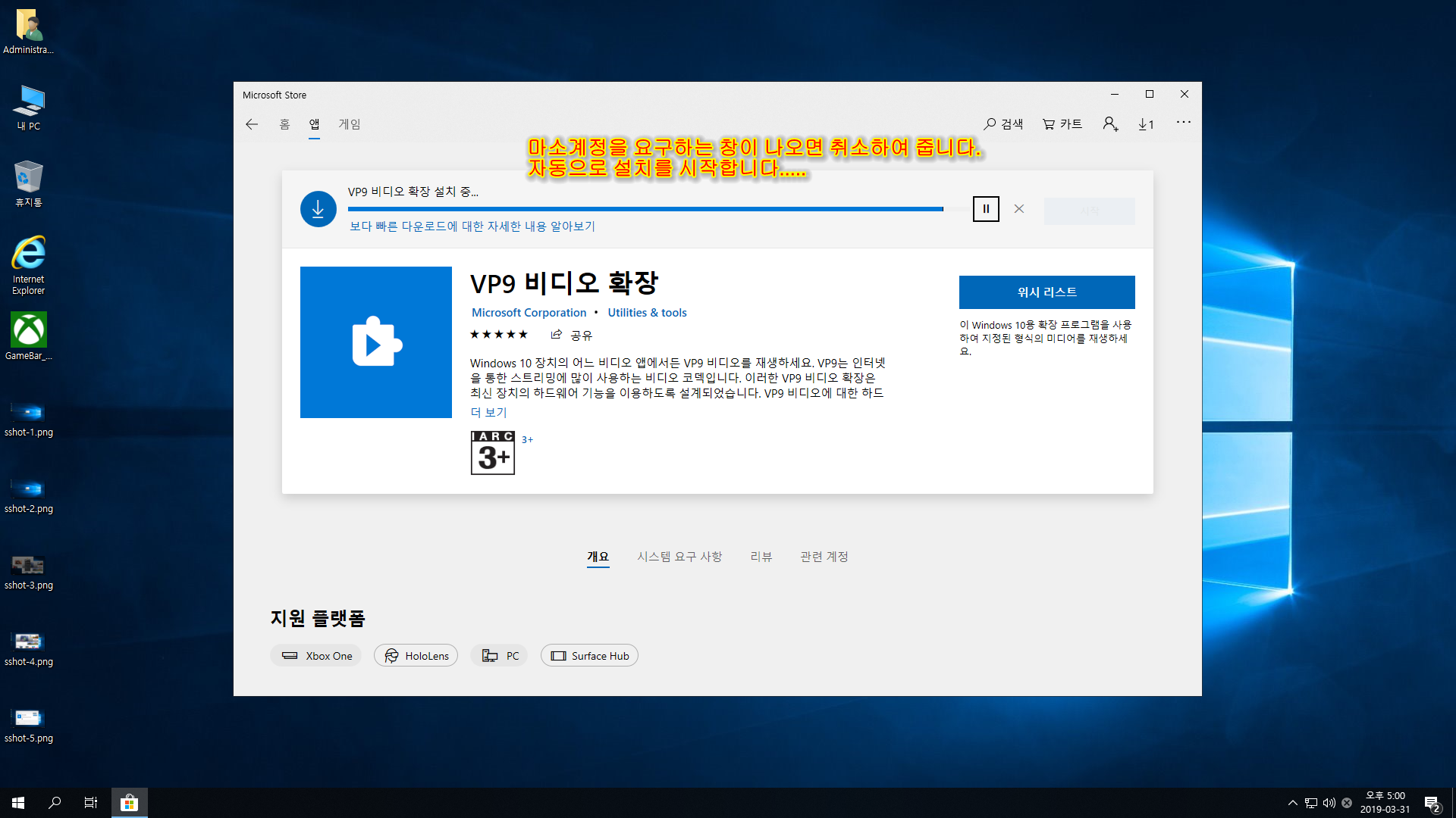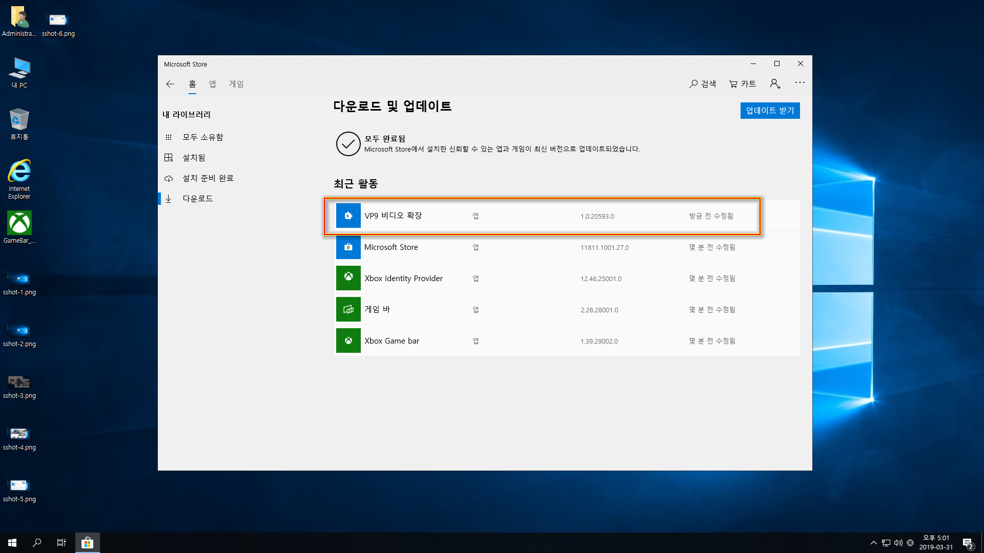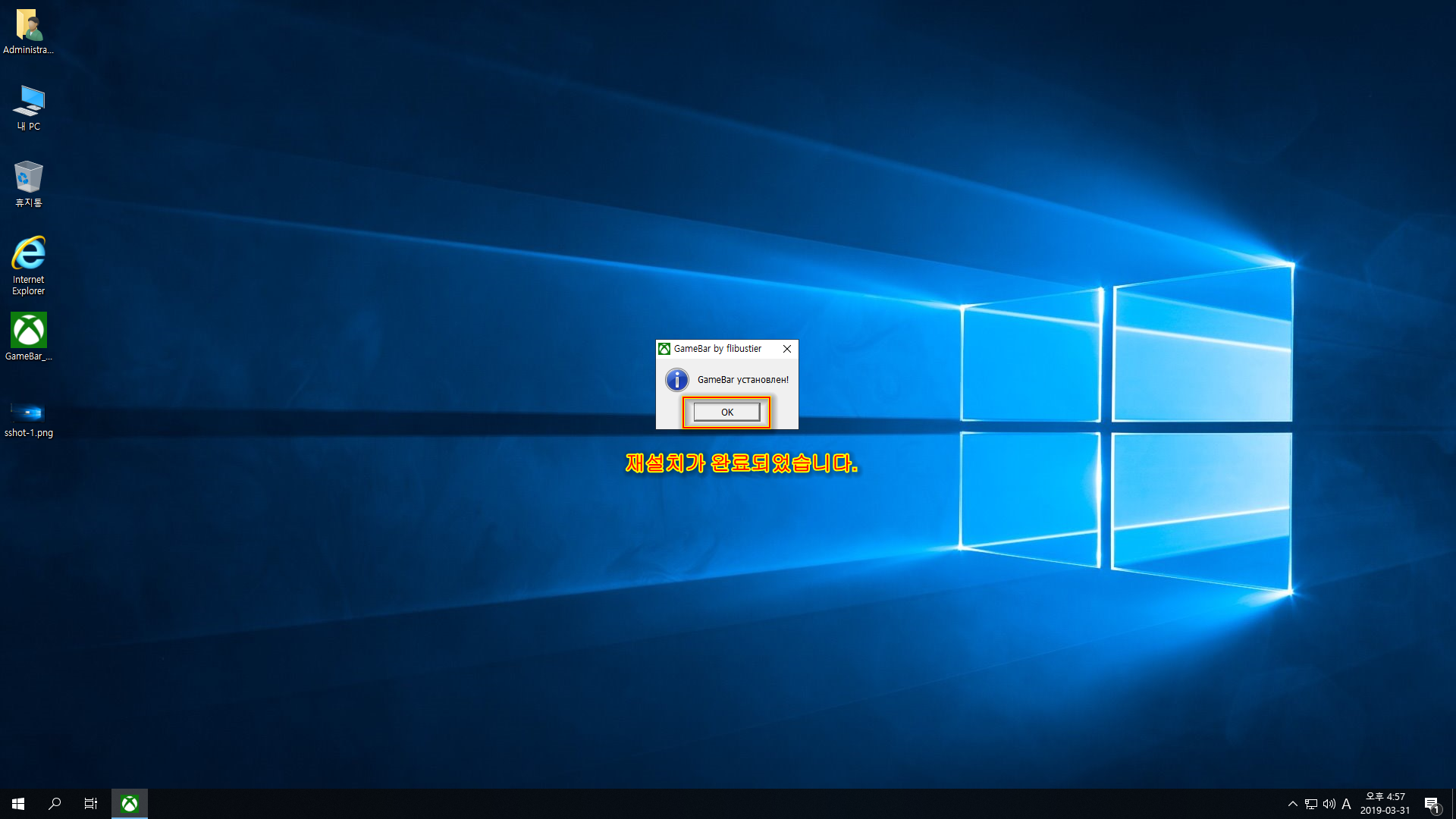 - 스토어앱과 게임 바 추가(게임 바 부분은 한번 더 재설치가 필요)