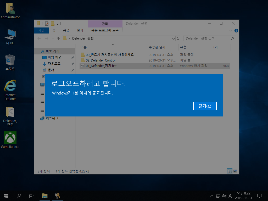 7. 디펜더 비활성화