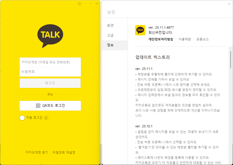 KakaoTalk_v25.11.1.4877 포터블 - Windows 10 / 11 용