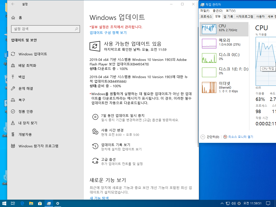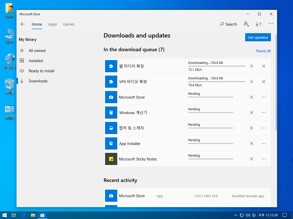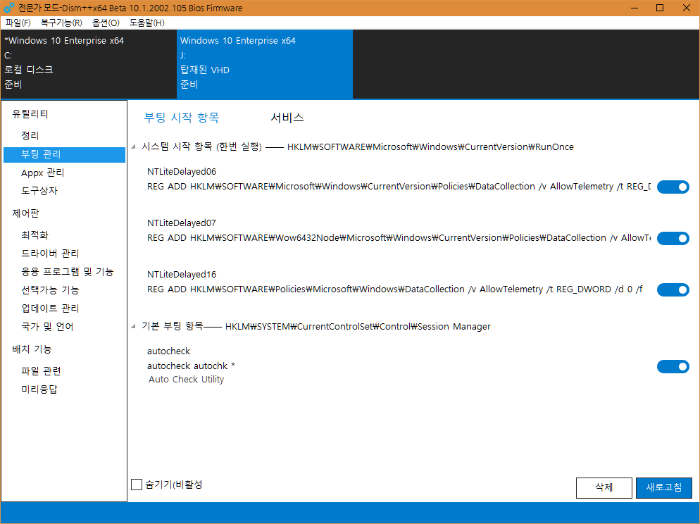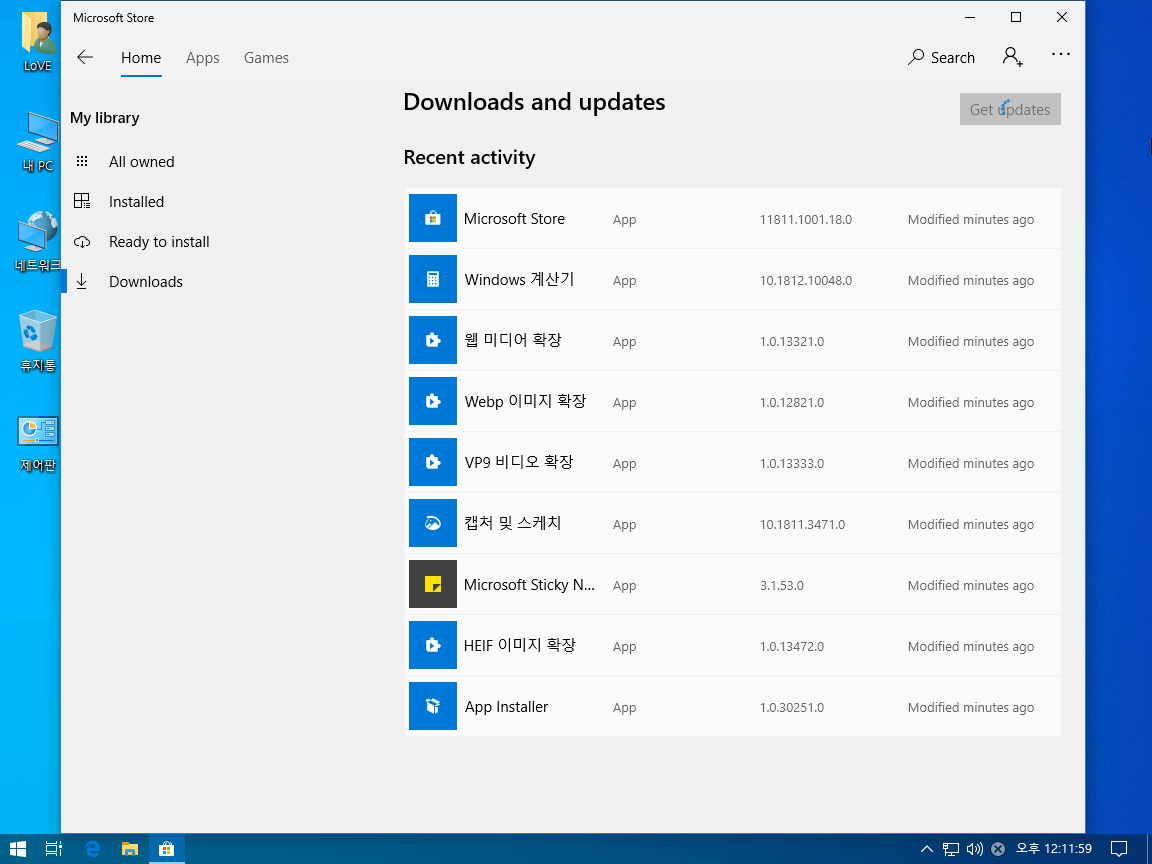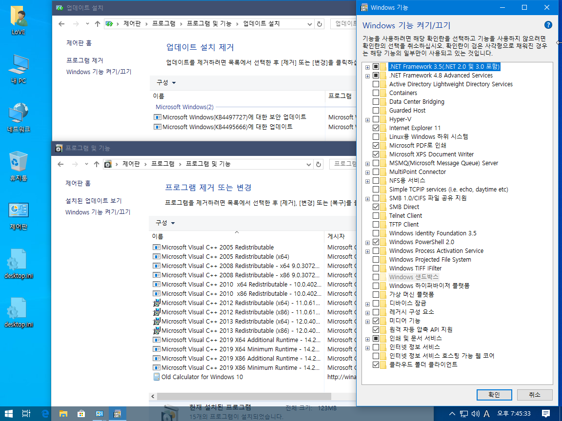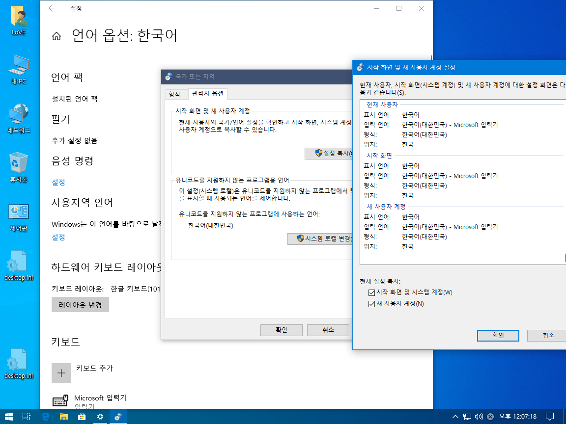 1903의 언어팩 적용이 트윅된 윈도우에 따라 조금씩 다른 결과가 나와