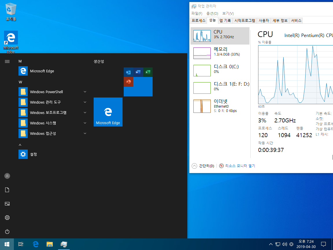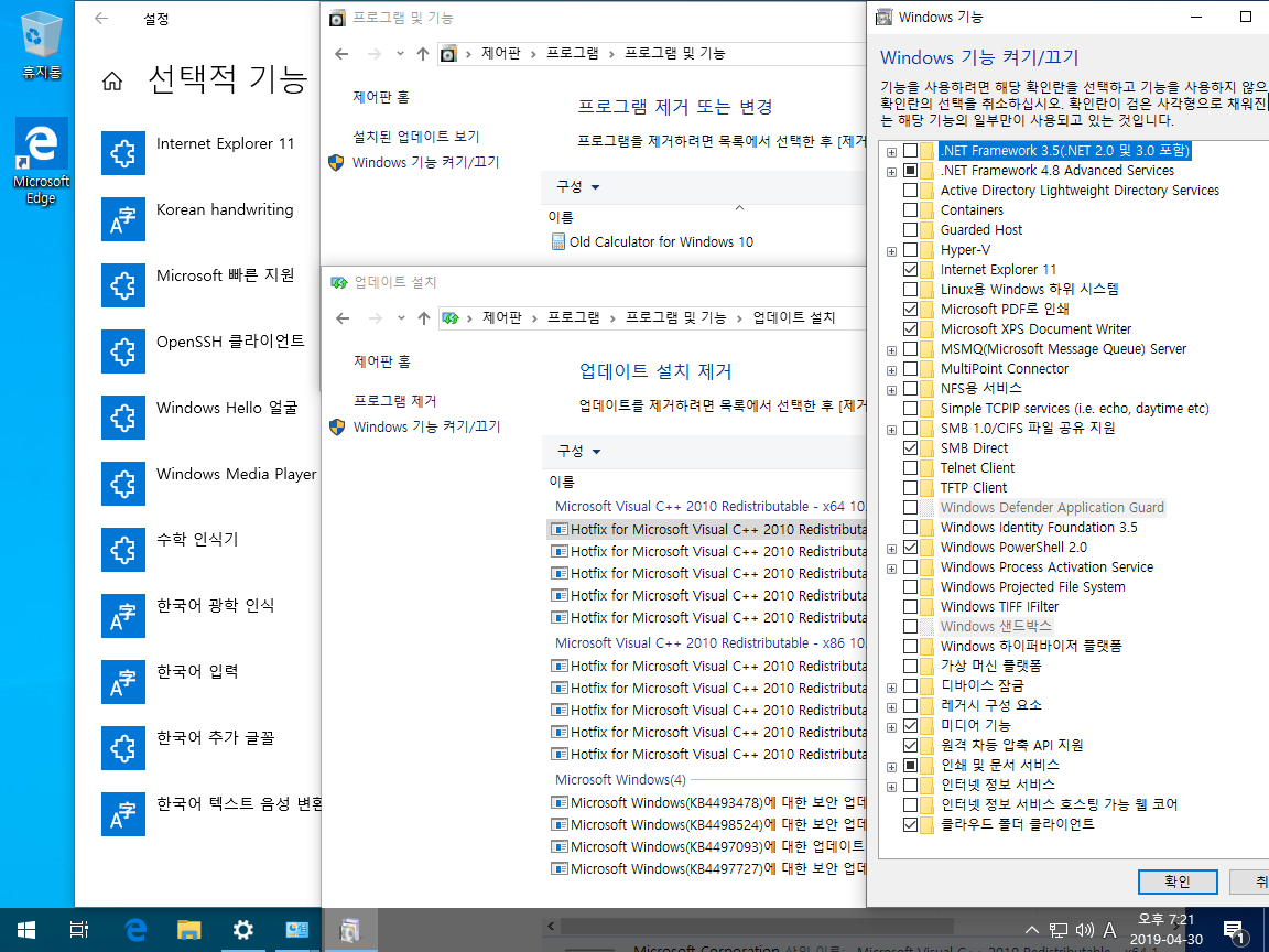 1. x64_Windows 10 PRO VL 1903 RUS G.M.A._KO_KY --------------> 모든 앱 삭제 / 엣지 에디션