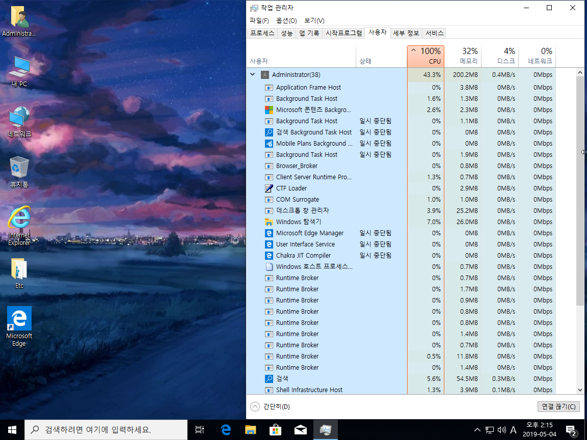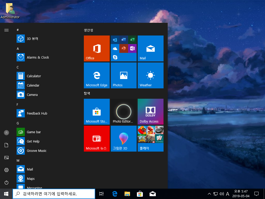사용자 계정과 Administrator 계정 두 가지 에디션으로 구성된 윈도우라