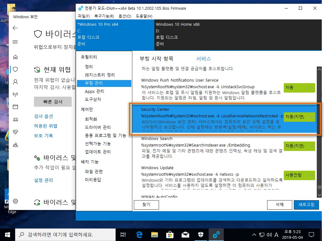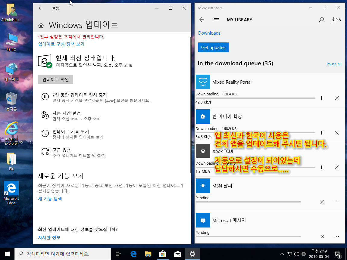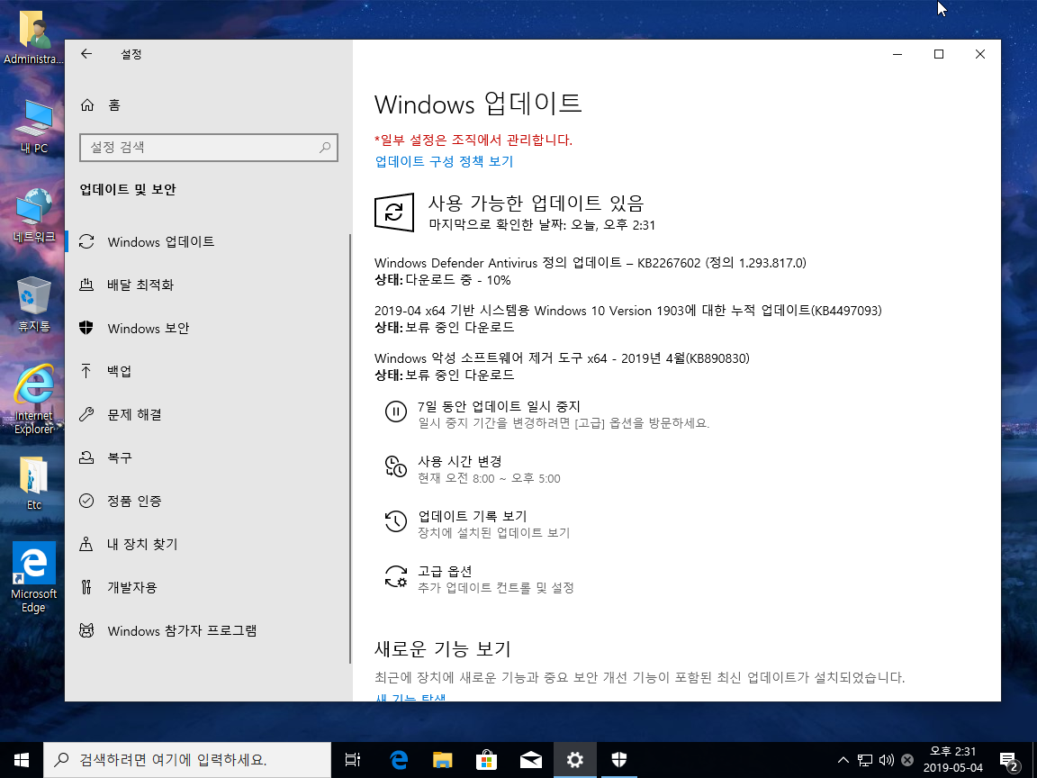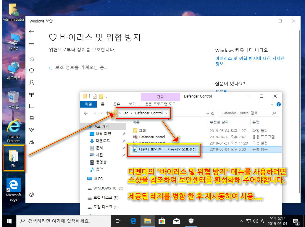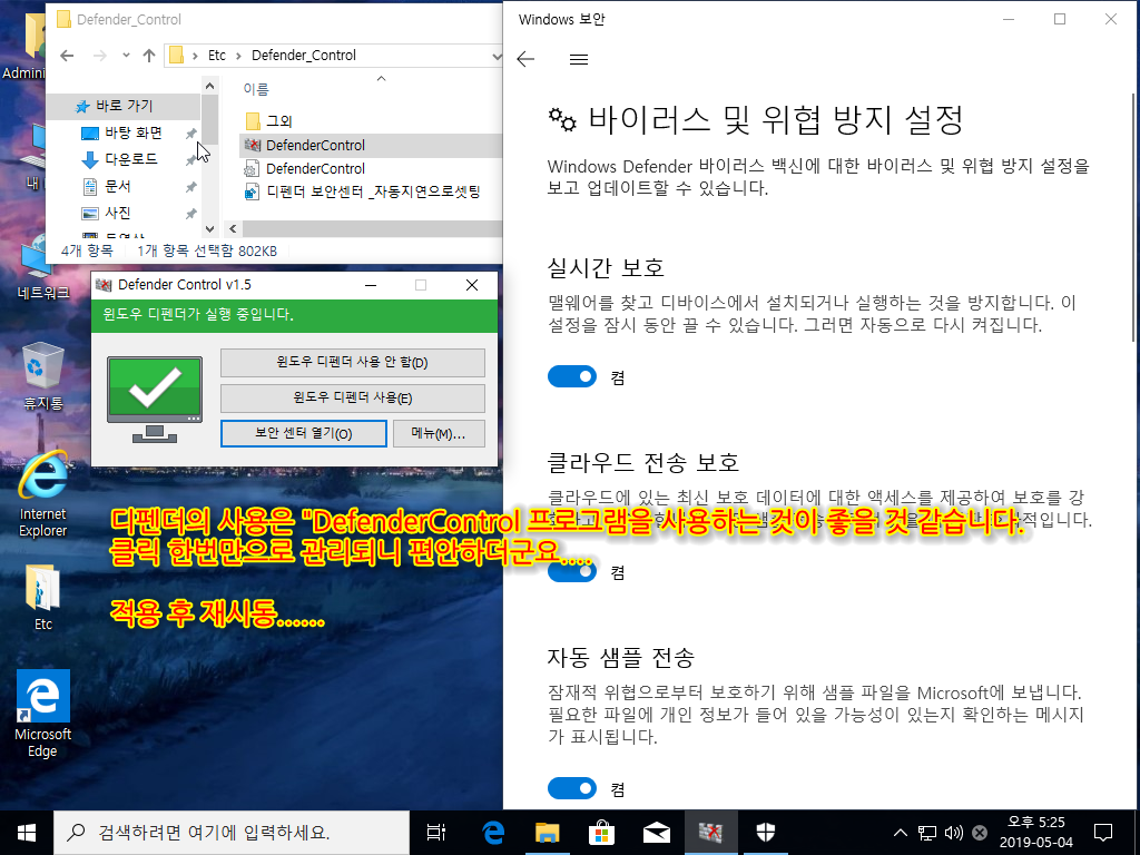 윈도우 업데이트와 디펜더 사용은 스샷을 참조하여 사용하시길 바랍니다.