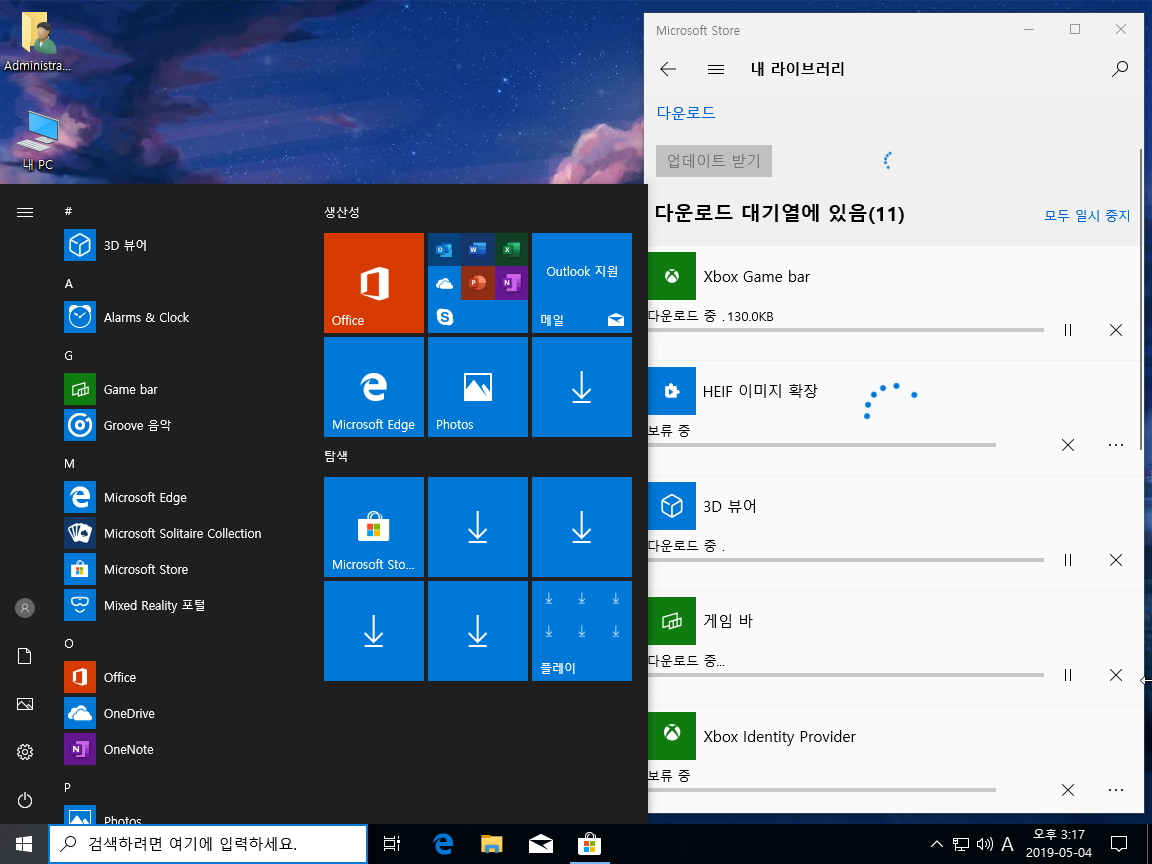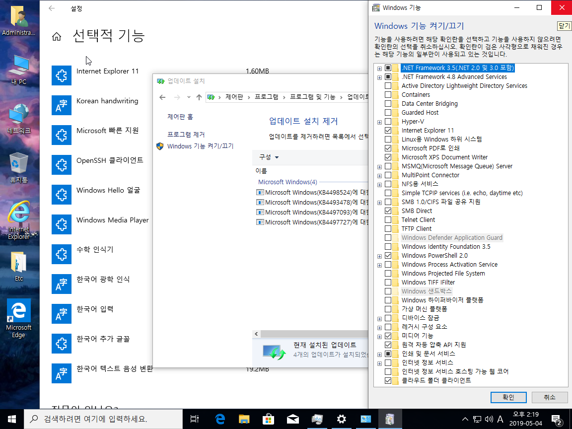 제작자 윈도우가 기능은 삭제하지않고, 비활성화한 윈도우입니다.