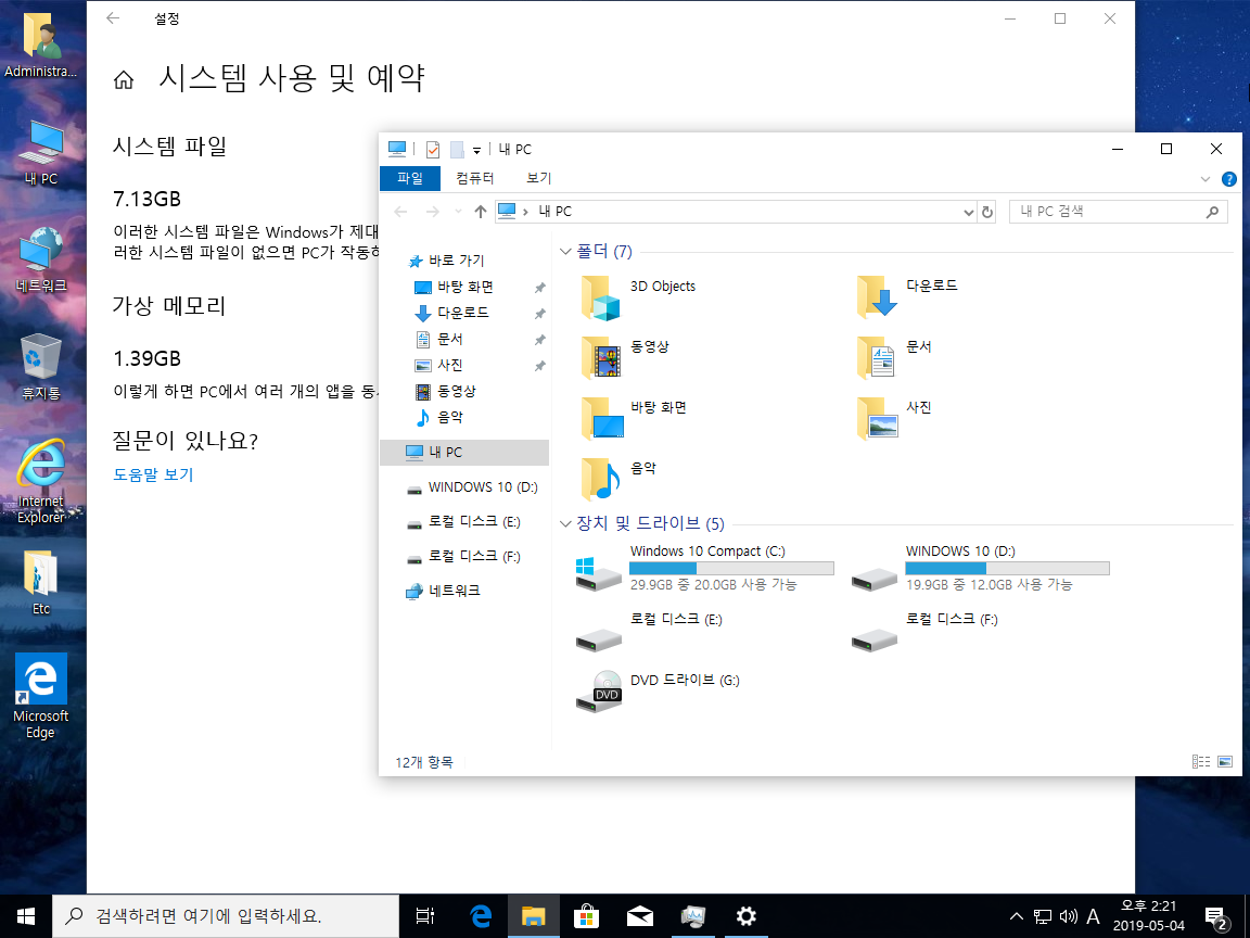 | Win10_19H1_1903_18362.86_x86●x64_5in1微量精简版 한글화 (6) | 2019.05.14 |