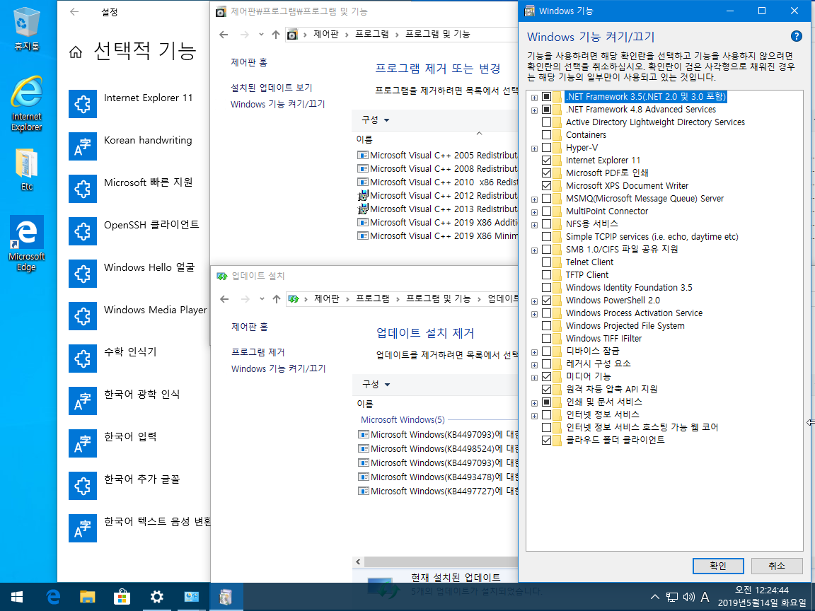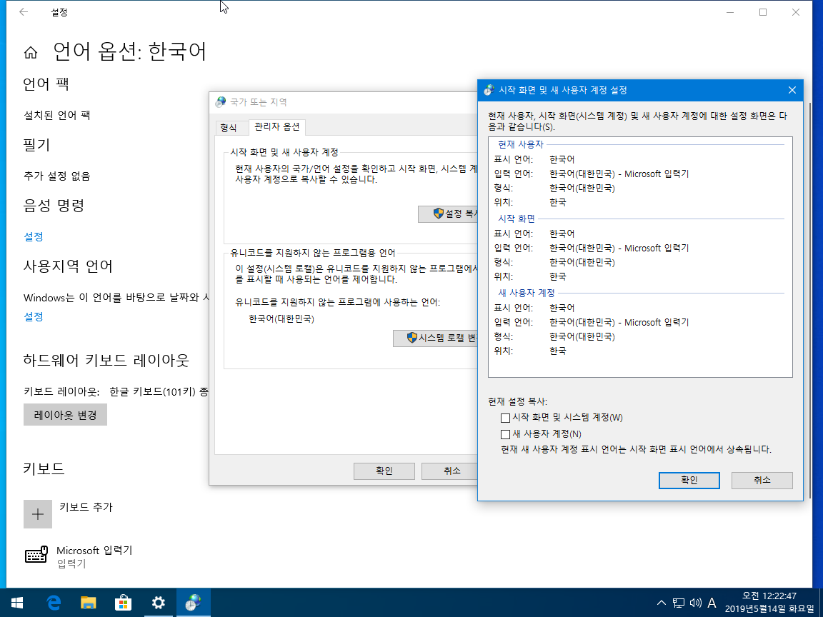 19H1 윈도우가 언어팩 통합 및 삭제 등 전반적으로 기존 윈도우 10과는 다른 것 같습니다.