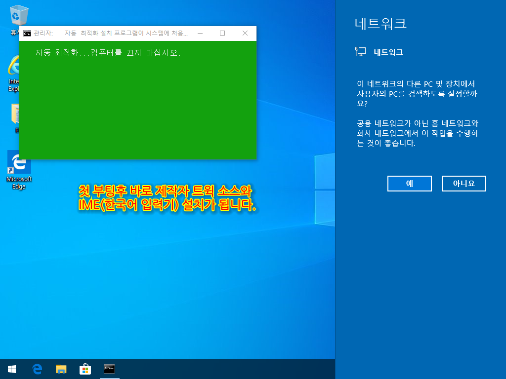 - 윈도우 설치 시 랜카드를 바로 설치하게 설정