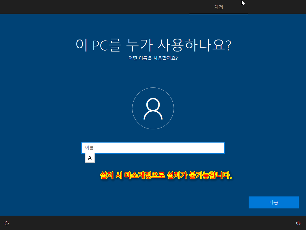 그리고 Windows\Panther\Unattend.xml 파일을 삭제하여 윈도우를 설치하면 다음과 같은 에러가 나오면서