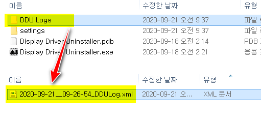 - 드라이버를 삭제한 후에는 로그 파일이 생성되어 'DDU Logs' 폴더에 저장됩니다.