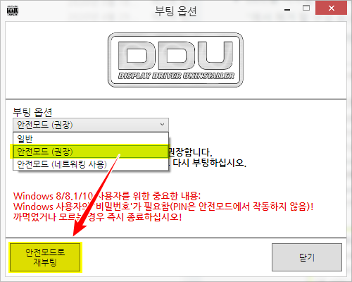 DDU를 사용하지 않고 안전모드로 부팅할 경우에는 아래 '드라이버 삭제' 항목으로 진행해 주시면 됩니다.