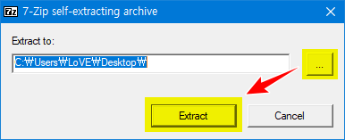 - DDU 프로그램의 저장할 위치를 지정하고, 'Extract' 버튼을 클릭합니다.
