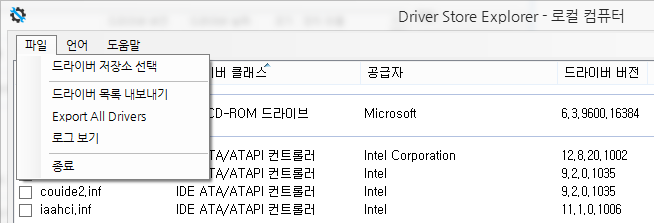 - 드라이버 목록 내보내기 : 목록을 CSV 파일로 저장