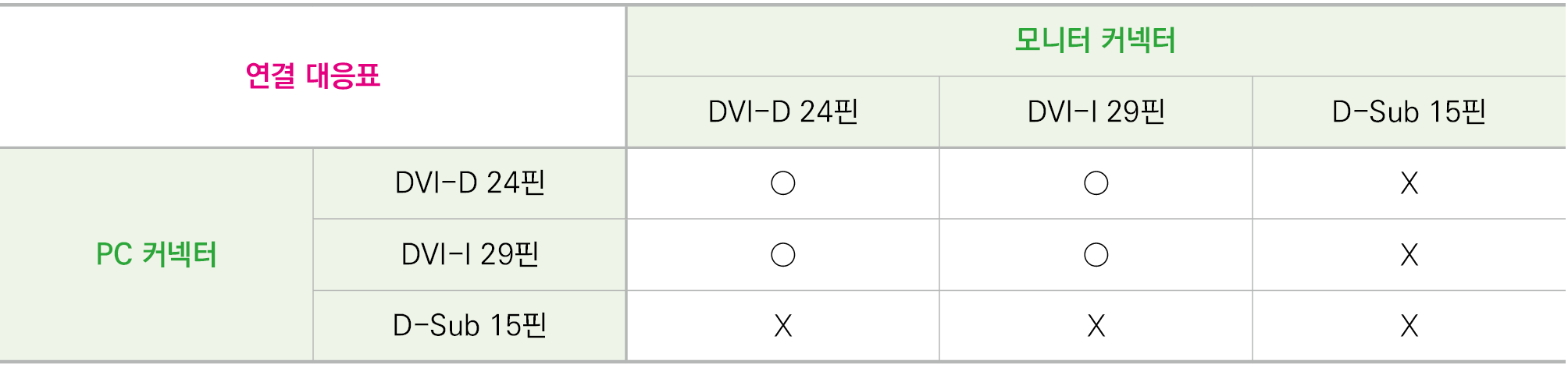 | D-Sub 15핀 - PC 커넥터 모양 | DVI-I 29핀 - 모니터 커넥터 모양 | ||||||||