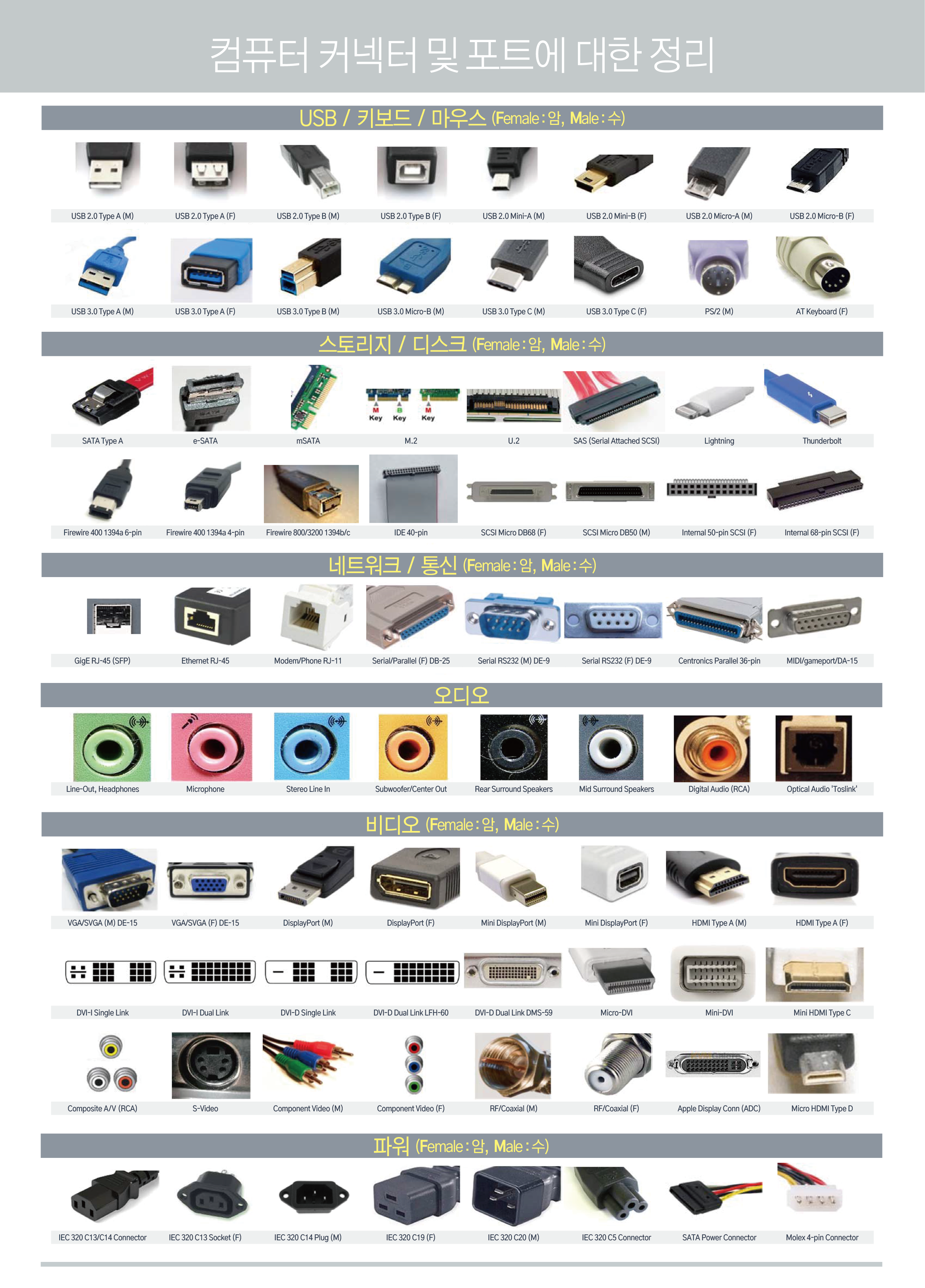 인터넷 검색 중 커넥터와 포트에 대해 자세하게 정리된 사이트가 있어 나름 재정리했습니다. 원본이 필요하시면 아래 링크된 사이트에서 다운 받으시면 됩니다.