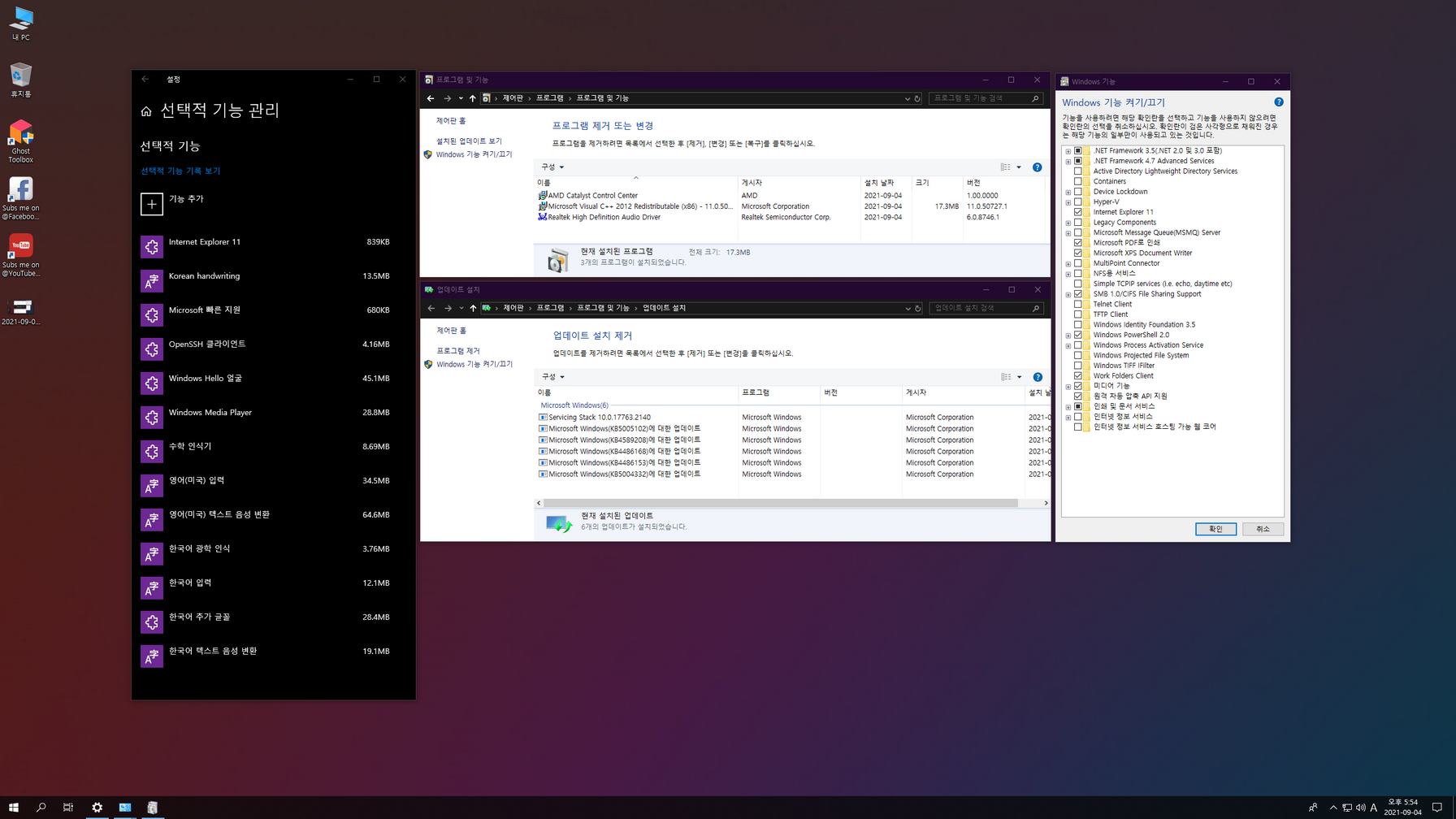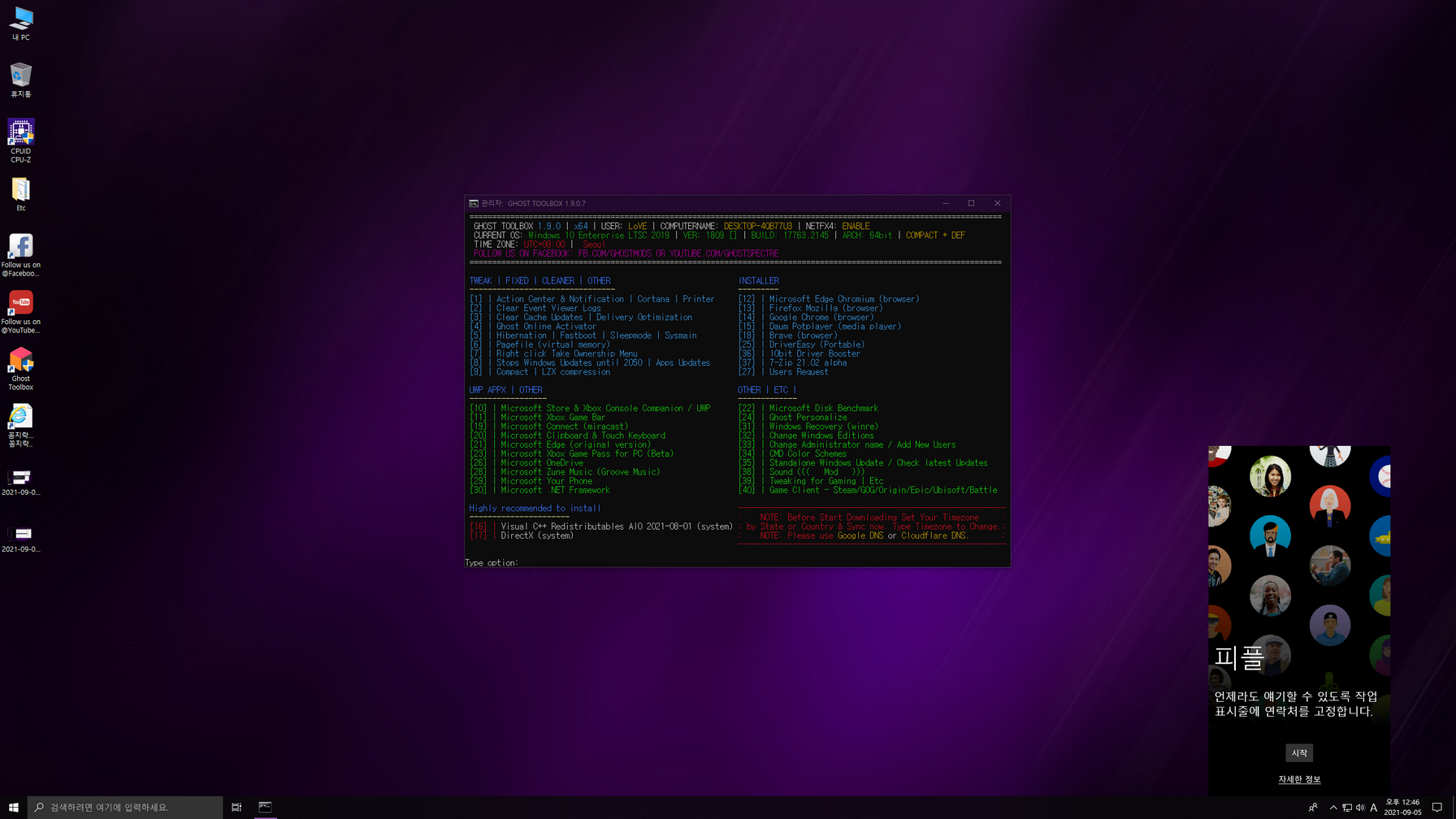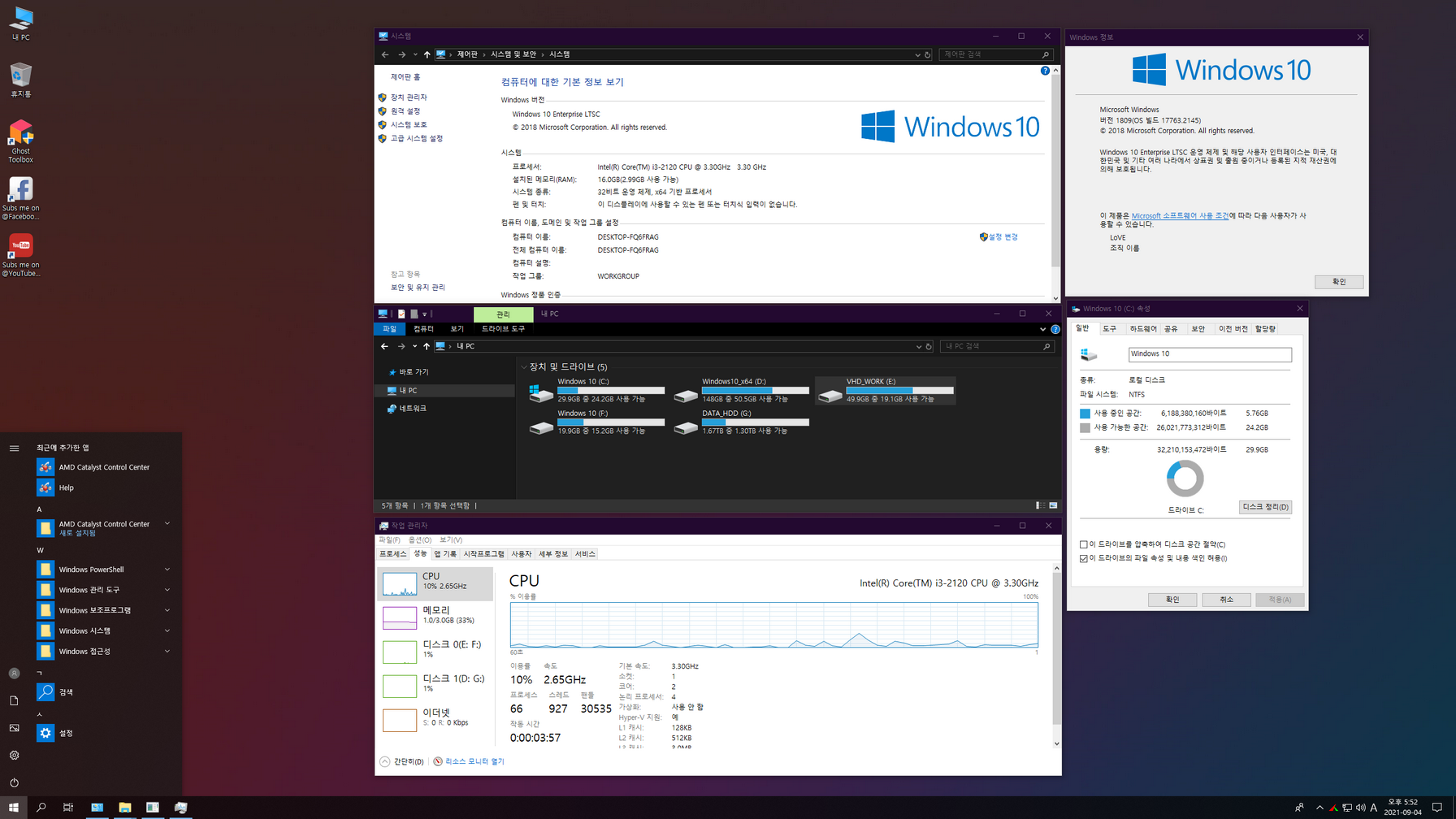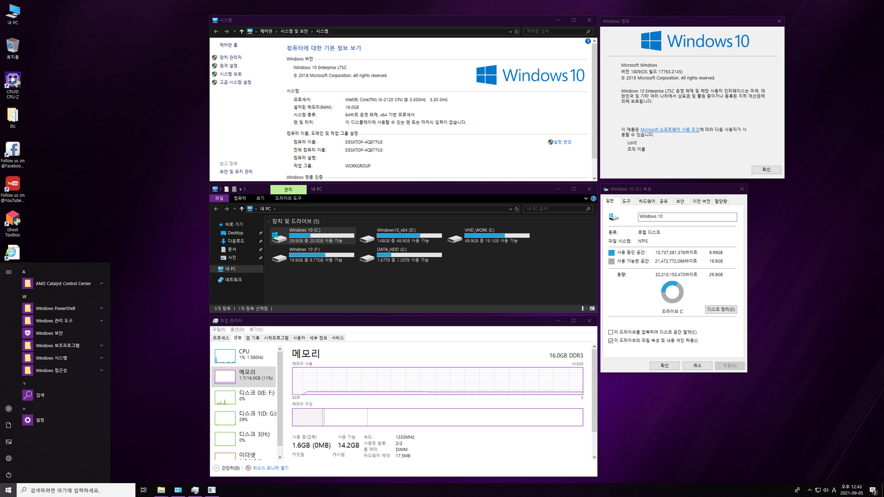 GHOST SPECTRE님 Windows 10 LTSC 2019 버전의 지역화 작업입니다. 제작자 버전 업데이트 부분과 개인 보관 차원에서 작업했는데, 생각보다 수정할 부분들이 많아 마무리가 늦어졌습니다. 영어 언어팩 삭제 및 제작자 누락 소스들을 정리한 윈도우입니다.