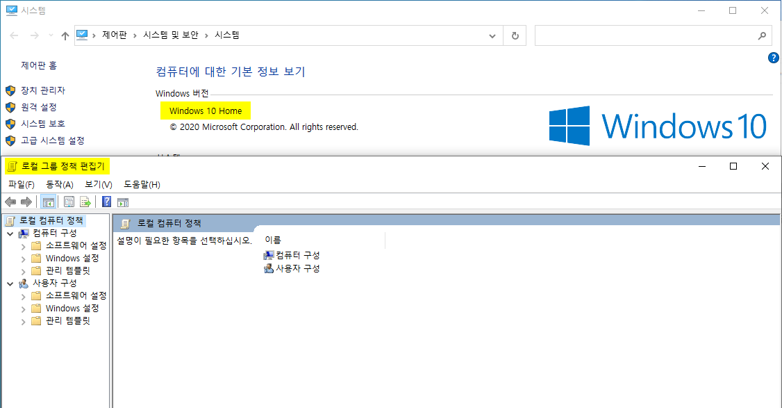 Windows 10 Home 버전에서 '로컬 그룹 정책 편집기' 활성화