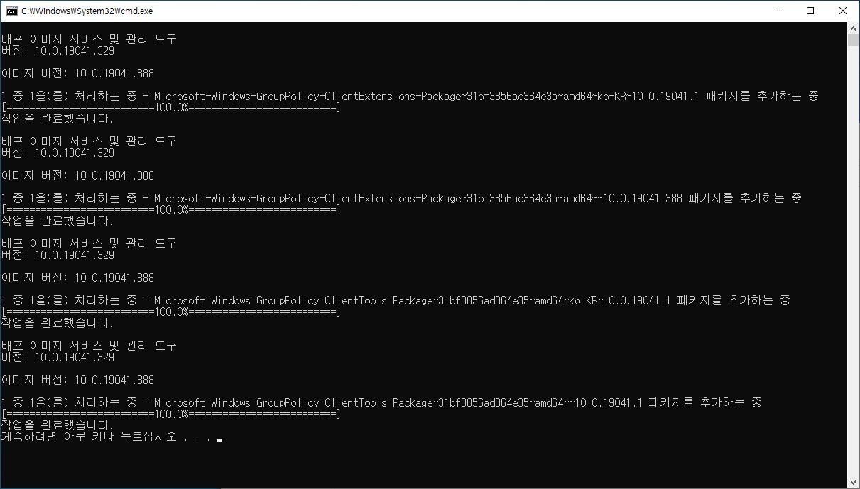 - '배포이미지 서비스 및 관리 도구' cmd 콘솔창이 실행되면서 설치된 윈도우 버전에 맞게 '보안 카탈로그'가 설치됨.