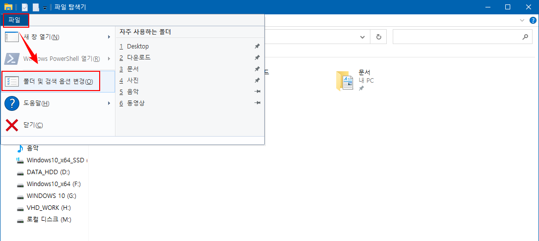 - 작업 표시줄의 탐색기 아이콘을 클릭하거나 바탕화면의 '내 PC' 아이콘을 더블 클릭하여 파일 탐색기를 엽니다.