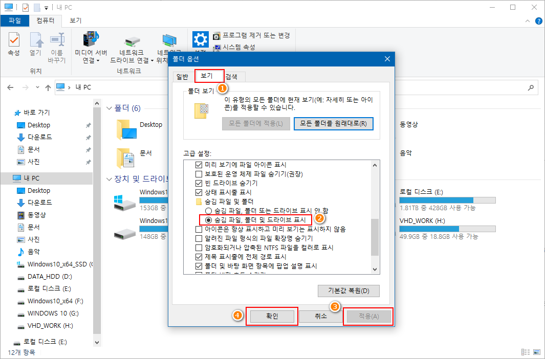 설치형 사용자 환경은 숨김폴더로 되어 있으니 '파일 탐색기 폴더 옵션'에서 '숨김 파일, 폴더 및 드라이브 표시'를 체크하여 경로를 찾아가시면 됩니다.