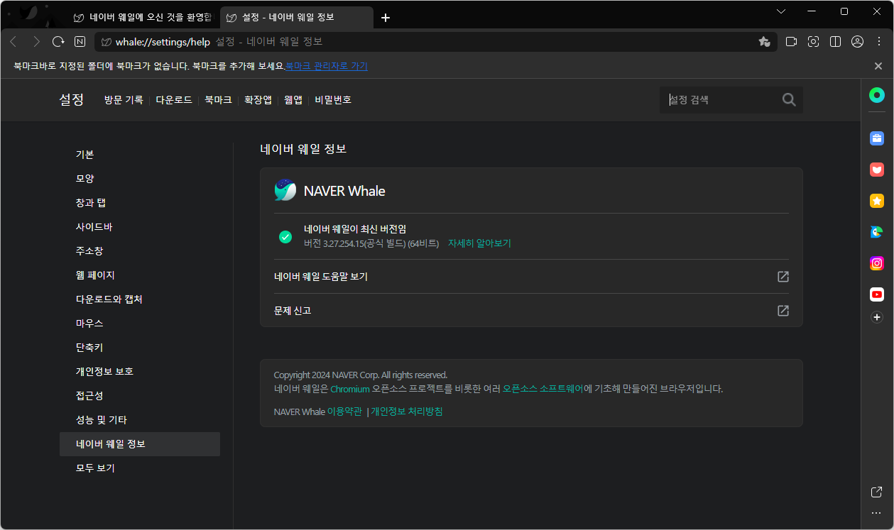 Naver Whale_v3.27.254.2 베타 포터블 (32bit / 64bit) - ③ X-Whale / MyChrome용