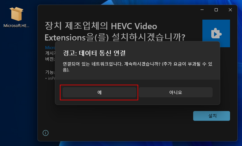 - 64비트용 : Microsoft.HEVCVideoExtension_***********_x64__8wekyb3d8bbwe.appx