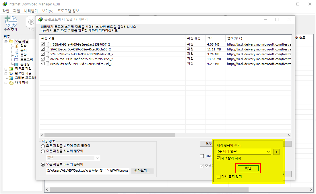 Internet Download Manager 프로그램은 각자 알아서 구하시고, 이와 비슷한 기능이 있는 프로그램을 사용하여 다운로드하면 됩니다.