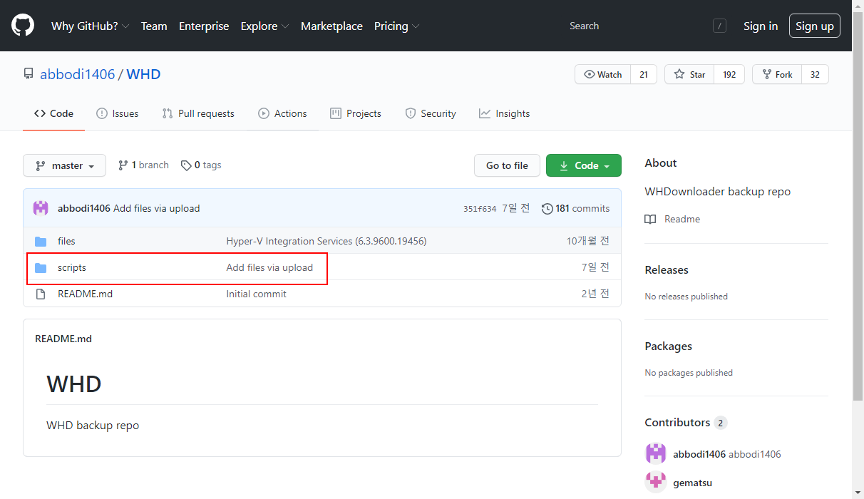 github(깃허브)에서 스크립트 다운로드 (가입 필요없음)