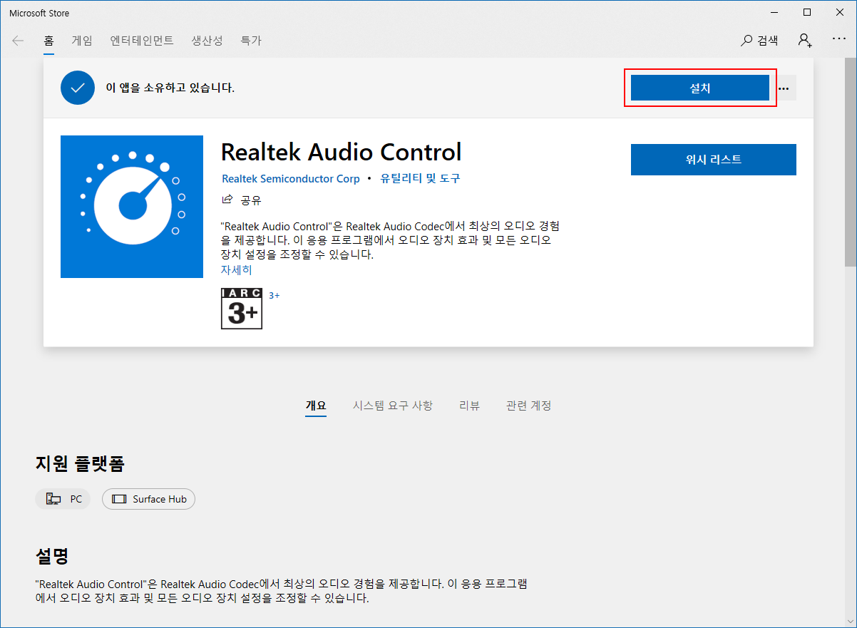www.microsoft.com/ko-kr/p/realtek-audio-control/9p2b8mcsvpln?rtc=1&activetab=pivot:overviewtab