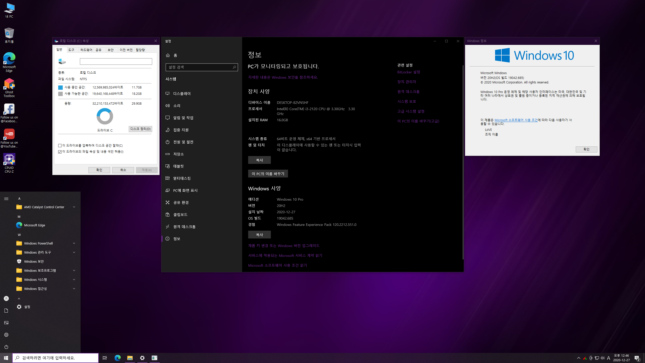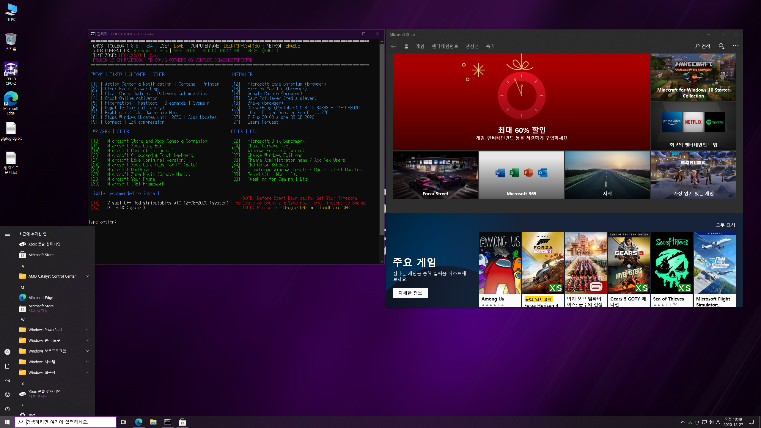 Description: Version 2009 / OSbuild 19042.685 / Without Defender(디펜더 삭제)