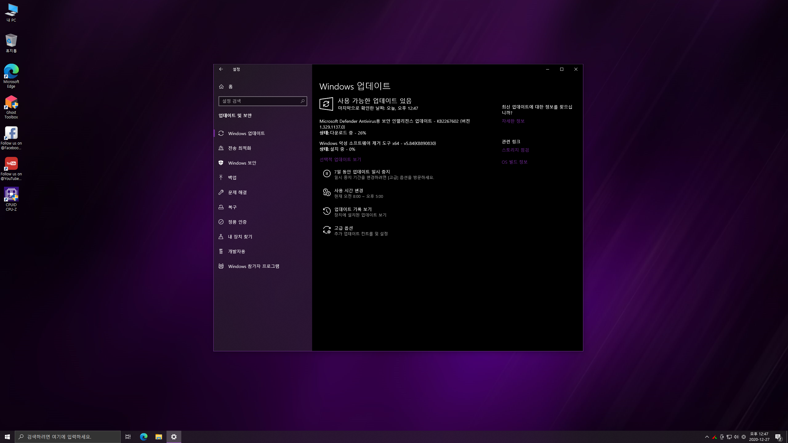 ※ Defender 에디션은 정의파일 업데이트와 Windows MSRT(악성 소프트웨어 제거 도구)가 통합되어 있지 않습니다.