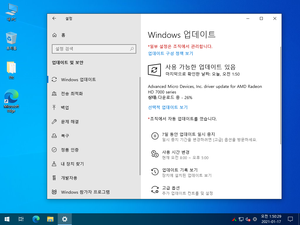 - 업데이트 통합(19042.746)