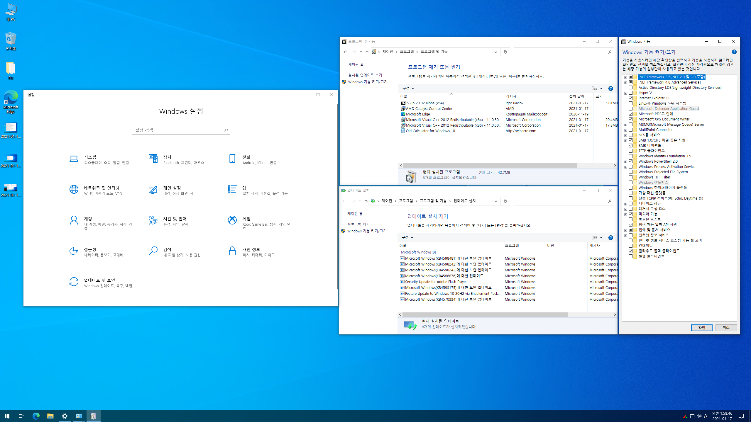 윈도우 포럼의 옛날에님 소개로 틈틈히 지역화하였습니다. 적당히 트윅된 윈도우로 디펜더가 삭제된 상태이고, 업데이트는 이상없습니다.