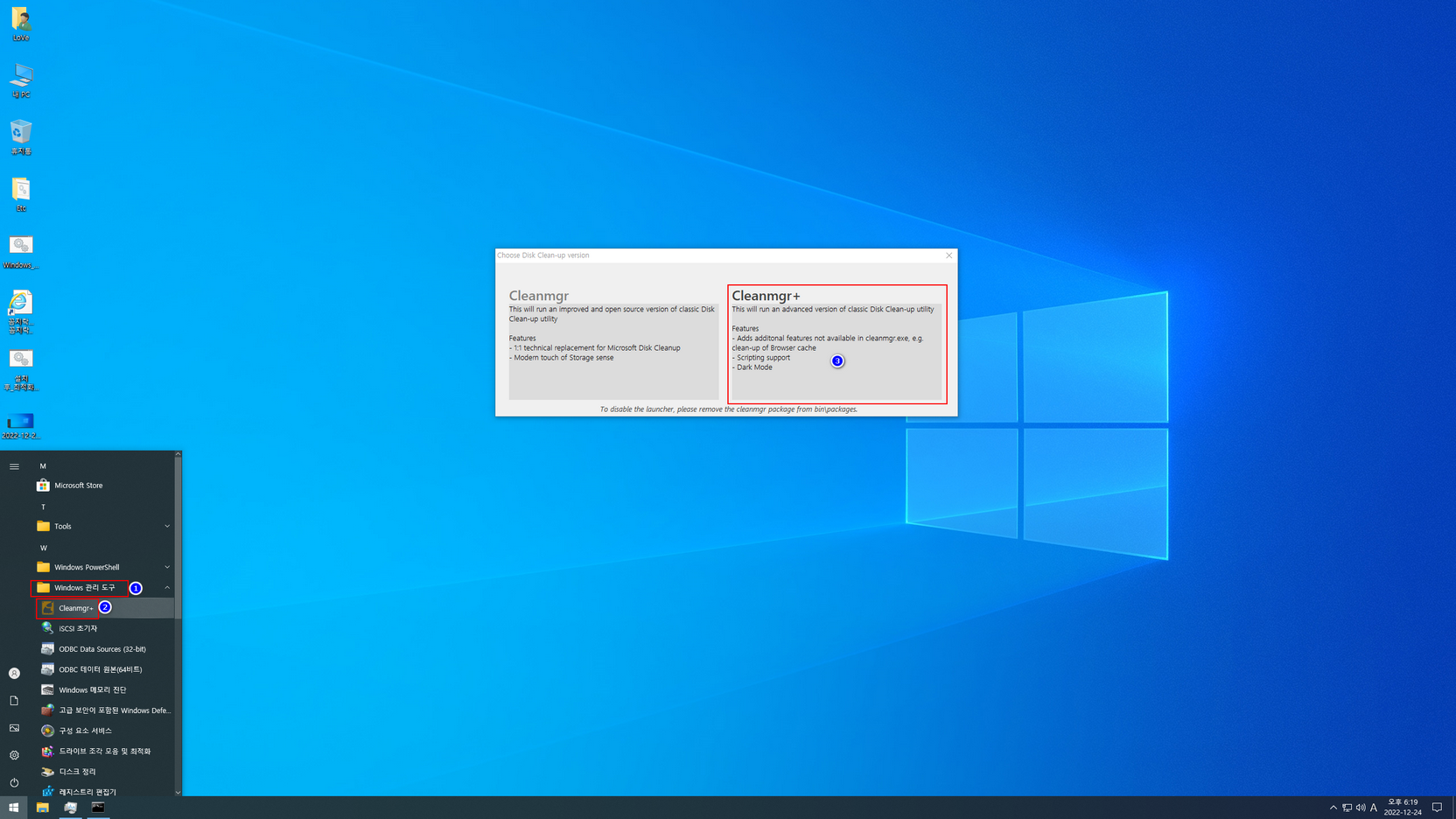 - Cleanmgr+(디스크 정리) 프로그램 추가(시작 메뉴 → Windows 관리 도구)