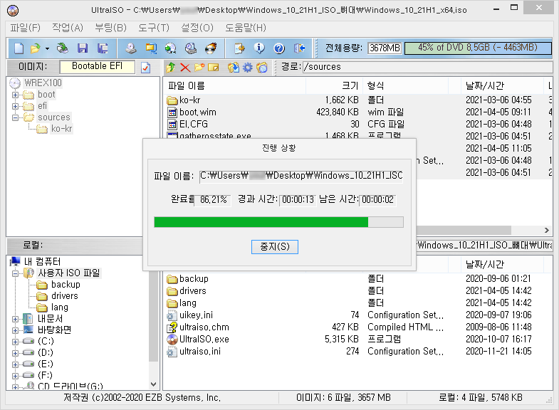 ISO 뼈대 작업에 사용한 윈도우 버전이 21H1(2104) 버전이지만 모든 윈도우 10 버전에 호환될 것입니다.
